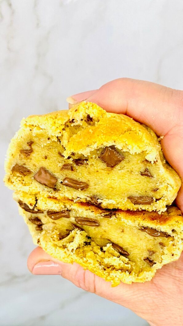 Deliciosas Cookies New York rellena de chocolate Blanco en pequeños trocitos, y un manjablanco casero preparado con leche condensada sin lactosa y leche ligth y sin lactosa , la unidad pesa 130 gramos, es crujiente por fuera y suave por dentro, la puedes disfrutar comiendo fria o caliente, y cuando la comes quieres seguir comiendo, es una delicia.