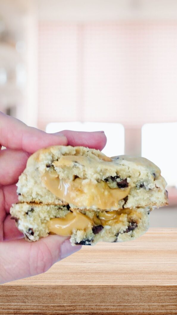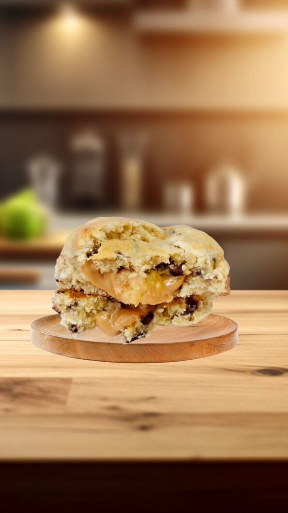 Deliciosas Cookies New York rellena de chocolate Blanco en pequeños trocitos, y un manjablanco casero preparado con leche condensada sin lactosa y leche ligth y sin lactosa , la unidad pesa 130 gramos, es crujiente por fuera y suave por dentro, la puedes disfrutar comiendo fria o caliente, y cuando la comes quieres seguir comiendo, es una delicia.