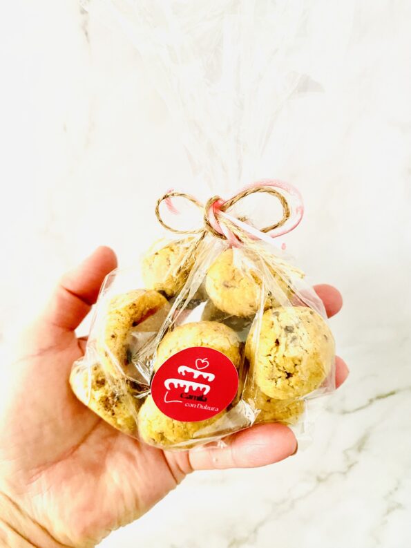 Son galletas, tipo Cookies Crumble con chispitas de chocolate bitter, vienen 6 galletas crujientes, las puedes disfrutar comiendo frias o calientes , dejate envolver por la mezcla de sabores de una deliciosa galleta caliente con un poco de Manjarblanco de Olla preparado con leche sin lactosa, queda delicioso.